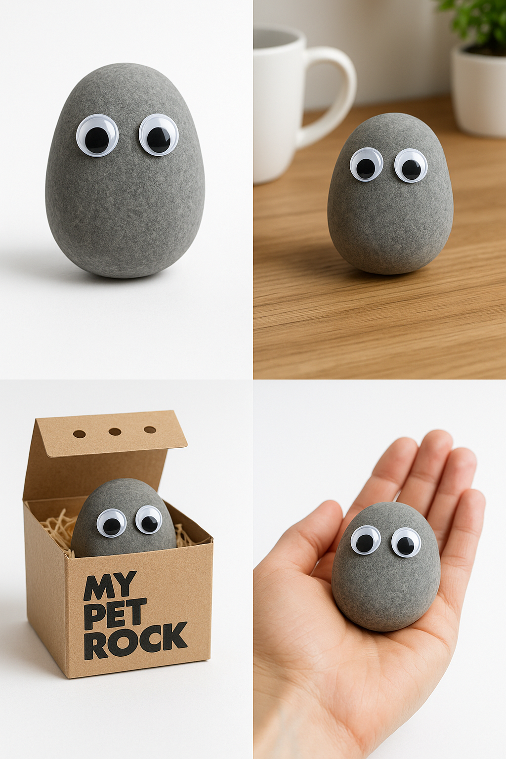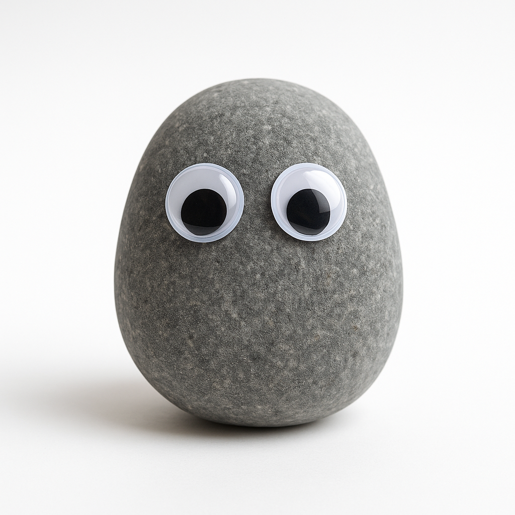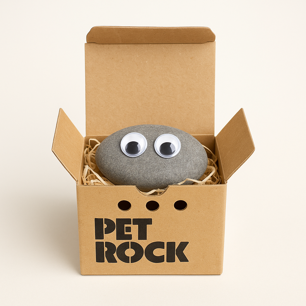 La mascota zen que nunca tendrá¡s que alimentar: roca de río natural con ojos móviles, cama de virutas y caja de transporte. |